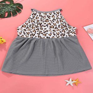 Leopard Spliced Flowy Ruched Tank