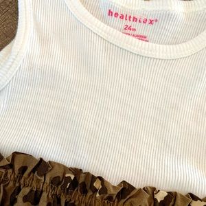 White Tank with attached ruffle leopard print skirt. Super stretchy and soft...perfect for summer or with a cardigan! New, never worn...Sz 24months/2T