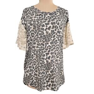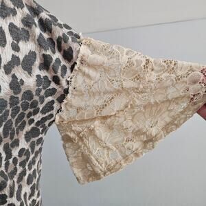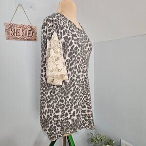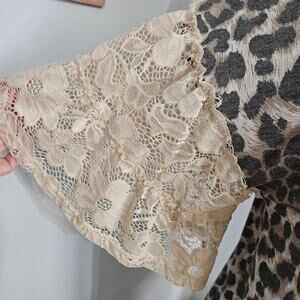Leopard Top Women's Medium Animal Lace Sleeves Mob Wife Career Office Dainty
