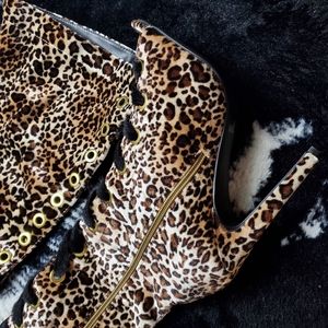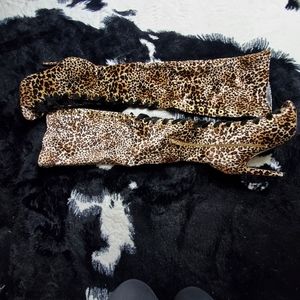 Colors: Camel Leopard Velvet OVER THE KNEE Boot w/black velvet laces