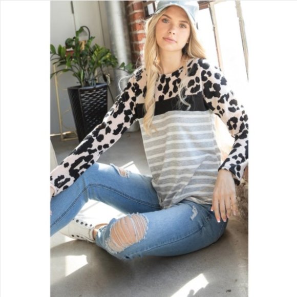 Leopard and Stripes Waffle Long Sleeve Tee LovelyJ