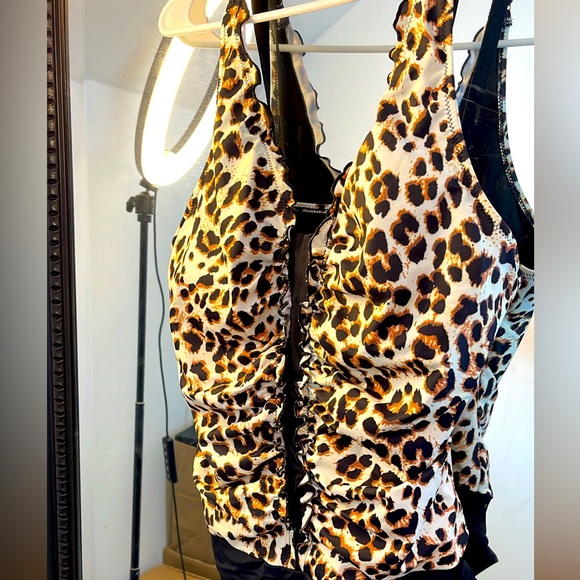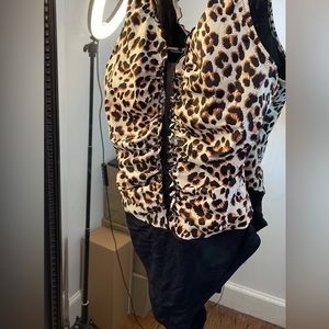 Brand new leopard bathing suit never been worn doesn’t have the tags but it’s brand new size XL
