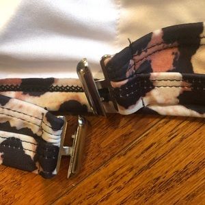 Very fun animal printed bikini. The top has adjustable straps and locking closure. Build in cups and the front slightly has ribbing that is fabric. Bottoms are cheeky with a slight rise!