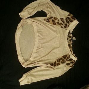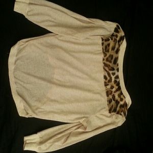 Leopard detail high low thin sweater top. Never worn, perfect condition. Great for fall! Size medium but can fit a small.
