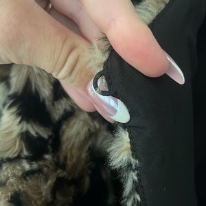 Good condition— has 4 large hook and eyes for closure. One hook came undone (see in images)