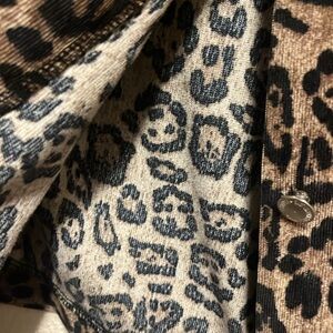 Has a fine corderoy fabric. It’s lighter weight, not heavy like denim. Soft.
