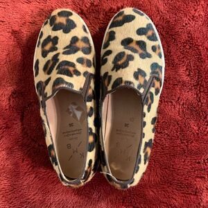 Leopard pony hair slip ons.