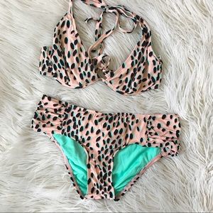 Mint and coral print bikini by Bar 111 (Macy's) . Listing as a M because top runs small and bottoms run big. Washed never worn.