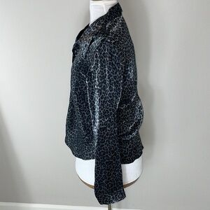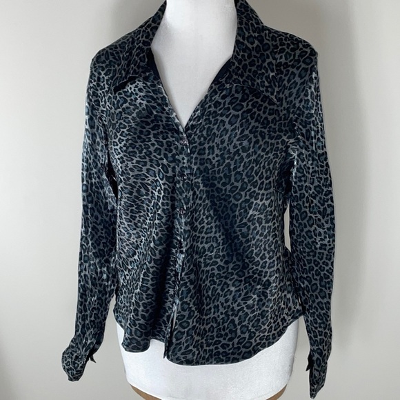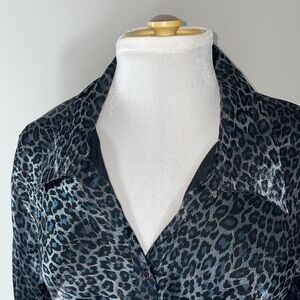 Giorgio Fiorliri Collection. Long sleeve button down collar shirt. I love the animal print pattern. It’s like a leopard print with a little blue. Women size XL.