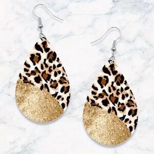 Leopard print earrings combined with waterdrop shape golden design - NWT