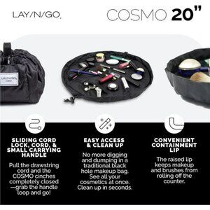 🧿QUICK & EASY CLEANUP: No more digging through messy makeup bags. Our lay-flat makeup organizer bag lets you see all your cosmetics at once. The raised lip keeps items in place, and with a simple pull of the drawstring, you're packed and ready to go.
