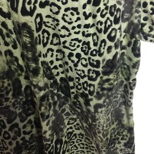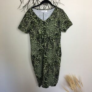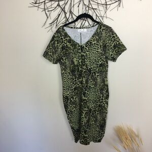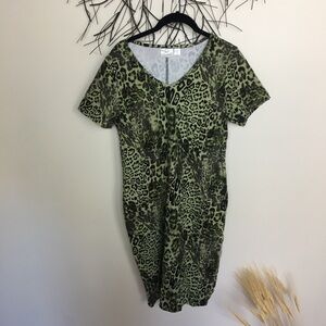 Green and black animal cheetah print soft flattering t shirt dress. Medium.