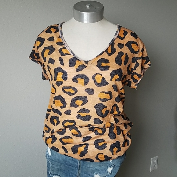 This NWT leopard print short sleeve tshirt is super soft and fits true to size. 50% poly 37%cotton 13%rayon