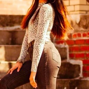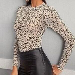 Leopard print semi-sheer long sleeve 🐆 Size // small Perfect to wear on its own or as a layering item! #leopard #sheer #layering #longsleeve #fall