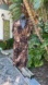 This dress is a very realistic, leopard print fabric in tones of black brown and cream. This is a polyester knit fabric with plenty of stretch. There’s a wrap front to the top and elastic waistband. Basically a knee length dress in excellent condition