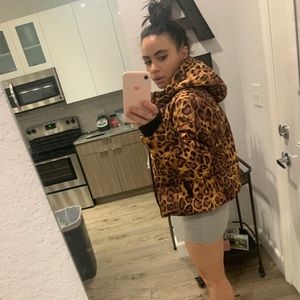 Big girls size extra large or 16. I am usually a medium in jackets and this fits me perfect. Never worn. I’m 5’1” 5’2” 112 pounds soooo not sure I always buy kids clothes clothes so not sure if you know your kids size but those are my measurements. Never went on the trip brand new tag included. Firm. I have no problem keeping it it’s adorable but just in case here it is super comfy and also keeps you warm thick. Love the finger hole. Speak to text. I don’t get offers only sold notifications. 🐆