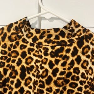 Mock neck leopard shell, fits snug and stretchy