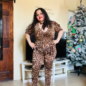 Stretchy Leopard one piece! I’m wearing size large and I am a big girl! I wear size L/XL and this large had more room.