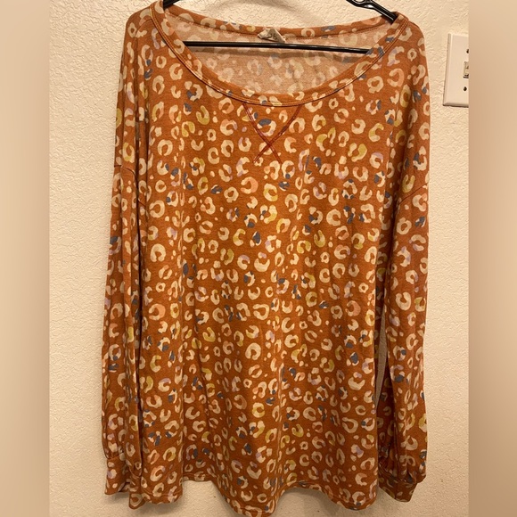 Burnt orange leopard print super soft sweater with a little bell sleeve