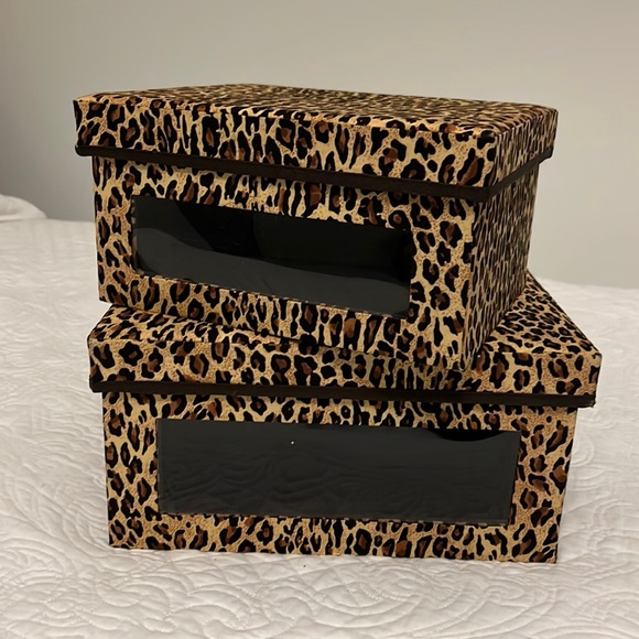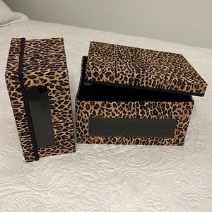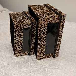 Set of 2 Leopard window boxes. Measurements for first box is measured by the lid and is 12 x 10 the second box is 10 x 8