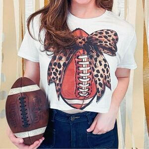 CROPPED Leopard Bow Football Tee. Sizes S - XL. Selling elsewhere for $58. Boutique brand is true to size.