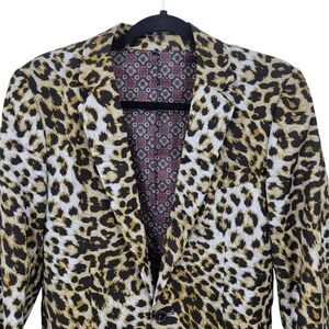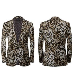 Leopard Print Mens Satin Blazer Jacket L/46 Single-Breasted Party Stage Suit