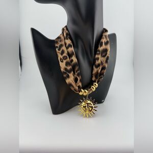 Leopard Print Scarf Necklace with Gold Sun Pendant – Bold, Glamorous & U…