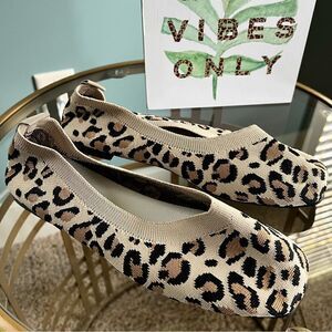 Super cute and comfortable Leopard Print flats. Comfort knit upper with gently elasticized top-line, square toe, lightweight, casual slip on shoe with flexible outsole. These shoes are perfect for any occasion.