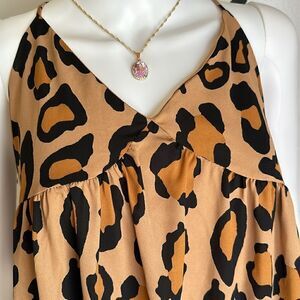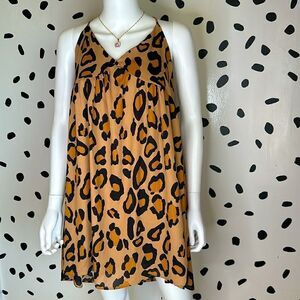 This adorable leopard print dress ships to you in perfect, worn once condition. Boutique brand Peach Love California, women’s size M. Razor back style, loose and flowy in the skirt area. Spaghetti straps, fully lined dress. Smoke free home. Perfect vacation dress.