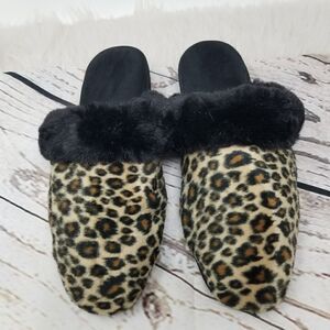 Fabric upper, leather soles. No size tag. Length is 9 3/4". Good used condition.