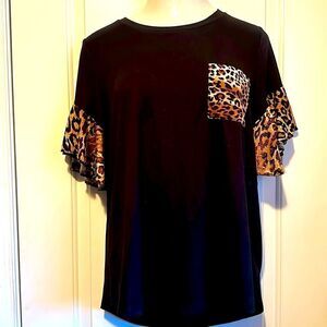 Leopard Top Size- Large Color- Black with leopard sleeves/pocket Nice shape! Smoke free home