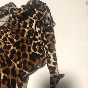 This is brand new with tags never used or worn. The fabric content is 92% polyester, 8% spandex. Tie sleeves. The chest is 58 inches, 29 flat. The length is 24 inches. This may be considered a crop top based on how you wear it or your figure. Would look super cute over a black T-shirt with high waisted jeans. The fabric is soft and comfortable almost like fleece. Very stretchy.