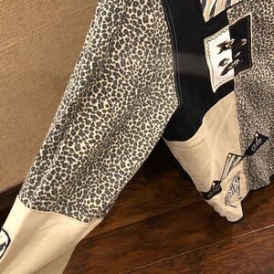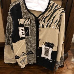 Leopard/cheetah plus size button down top/cardigan with patchwork and designs, oversized statement buttons
