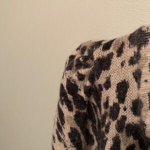Soft and fuzzy texture with ruched shoulders. 3/4 length sleeves with full length buttons up the front.