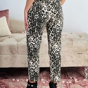 Leopard print denim pants