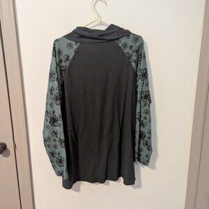 Leopards & Roses Shirt Patchwork Organic Raglan Floral Hippie Festival Turtleneck Cowl Neck Boho Lagenlook Long Sleeve