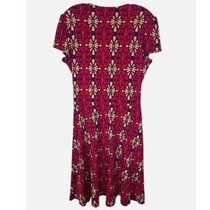 Item in Excellent Preowned Condition. Women's Boho floral print Amiya Dress, Made in USA, 95/5 Polyester / Spandex blend, Midi, Ruched waist, Flutter sleeves, flattering and casual Chic, South Western print, Faux wrap look, V-neck. Measurements taken laying down: