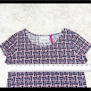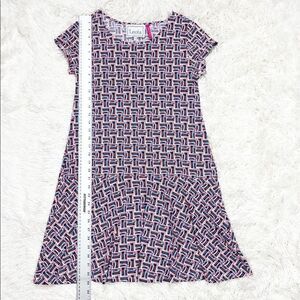 Super cute pre-owned Leota Compass Rose Geometric Short Sleeve Shift Tiered Swing Dress Size Small. Very stretchy and comfy! No stains or holes. Please ask all questions before purchasing.