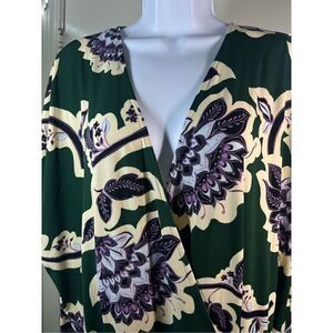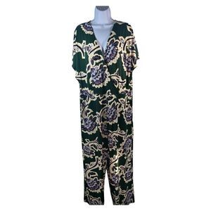 Leota Faux Wrap Ruby Floral Jumpsuit 1X in Green/Purple/Cream New