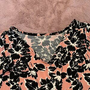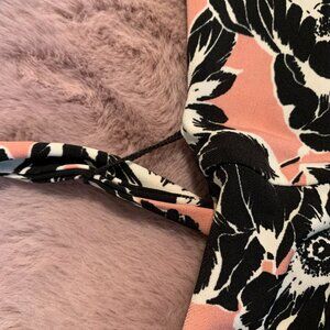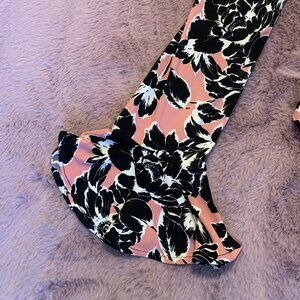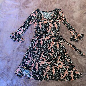 Leota Ilana Flounce Sleeve Dress - Pink and Black Floral with Ruffle Sleeves and Tie - Medium