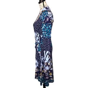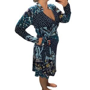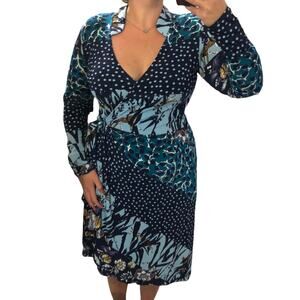 Leota MEDIUM Gabrielle Dress in Montage Crepe Jersey Knit Faux Wrap Long Sleeve