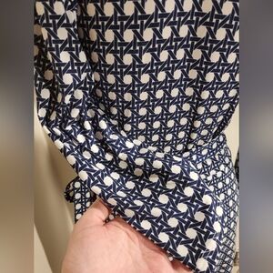 Leota Made in New York Polka Dot Blue Wrap Front Tie Waist Dress Size Medium