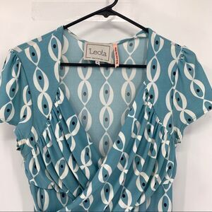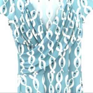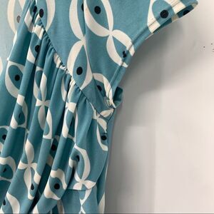 Leota Maternity Jersey Knit Geo Print Cap Sleeve Faux Wrap Dress M