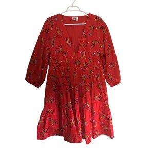 Leota Midi Dress Women's Size 1X Red Cheetahs Long Sleeve Cotton Blend