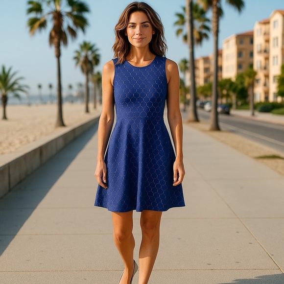 Chic navy mini dress by Leota. Sleeveless design with a flattering fit. Perfect for any occasion.