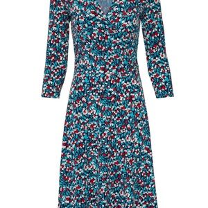 Beautiful small floral in vibrant colors. Perfect faux wrap dress with 3/4 sleeves