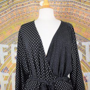 Leota Polka Dot Belted Faux Wrap Long Sleeve Dress