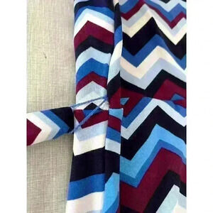Leota Perfect Wrap Dress With Faux Wrap 3/4 Sleeve in Blue and Purple Zig Zag Print in Women's Size Small Petite.