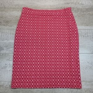 Stretchy pink and white geometric print pencil skirt. Size small, Stitch Fix. Barbiecore Measurements: Waist- 14.5 Length- 21 1/4
