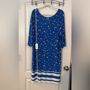 Beautiful Sheath dress with nautical sailboat print and striped hem